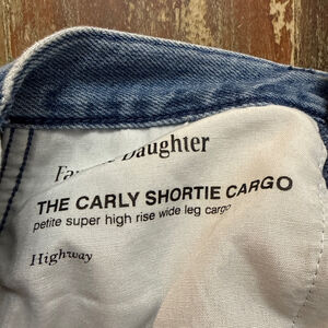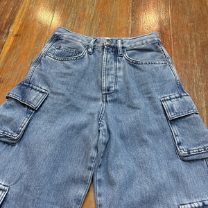 pre-owned Favorite Daughter "The Carly Shortie Cargo" wide-leg jeans in a light blue wash, size 24