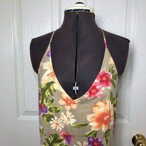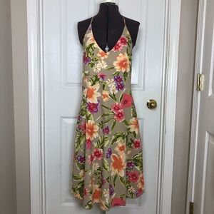 Rave Stretch Cotton Made USA Vintage Open Back Tie Neck A Line Floral Dress XL