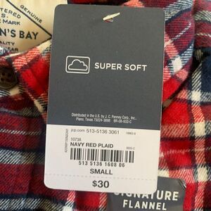 St. John’s bay quality mens wear size S long sleeve shirt, Navy red plaid super soft