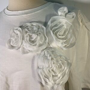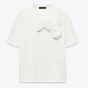 ZARA NWT Organza mesh 3D Floral Top Size M Casual cottage spring tshirt