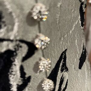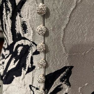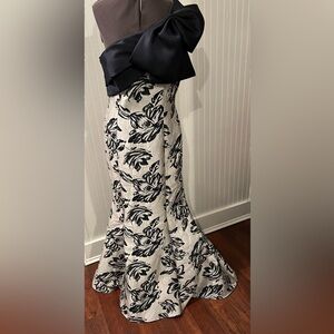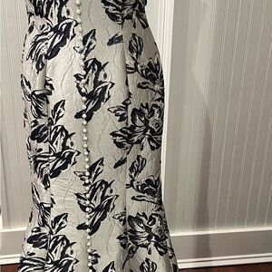 Embrace sophistication with this elegant one shoulder dress, showcasing a beautiful navy and silver with floral pattern. Ideal for any special occasion. Original price $1,035.