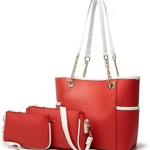 Elevate your style with this elegant red and white tote bag set. Perfect for daily use, it combines functionality with a chic design.