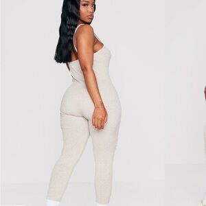 SHAPE OATMEAL THICK RIB SLEEVELESS JUMPSUIT PrettyLittleThing