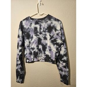 RSQ Womens Cropped Tie Dye Sweatshirt Purple Black White Pullover M Grunge Edgy