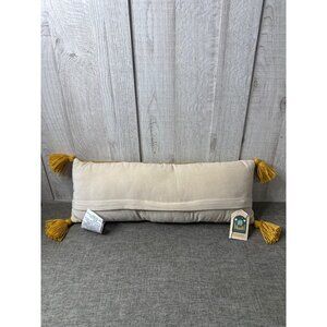Peking Handcrafted Chi Chi Leopard Lumbar Hook Pillow Tassels Yellow White Wool