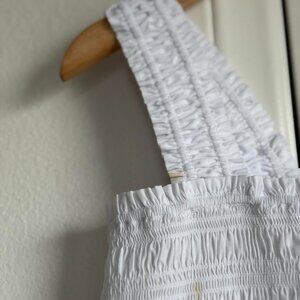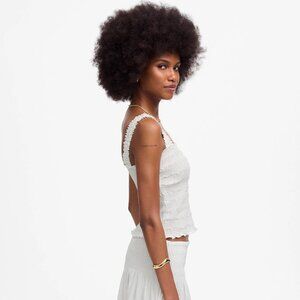 Madewell Poplin Smocked Tank in White, Size X-Large