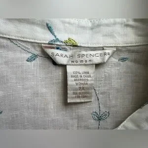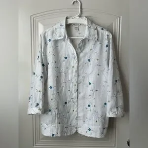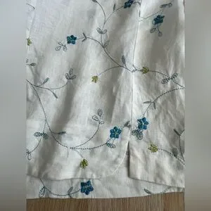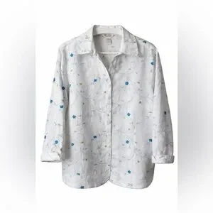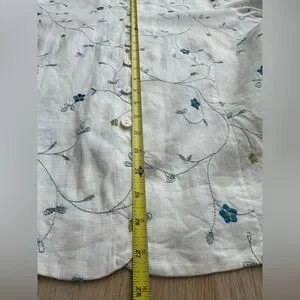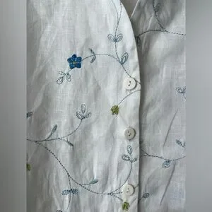 Sarah Spencer 100% Linen Embroidered Floral Button Front Shirt 2X White Blue