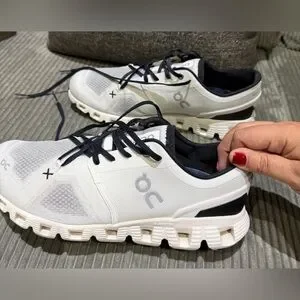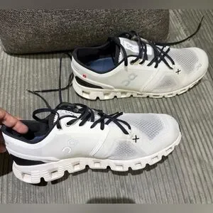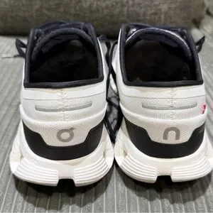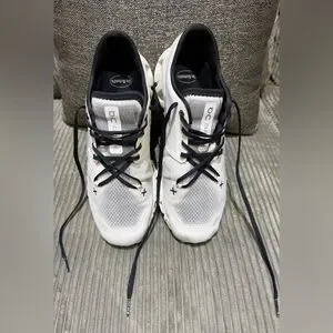 Experience comfort and style with On Running men's sneakers. These white and black shoes are perfect for any casual outing or athletic activity. used in good condition
