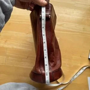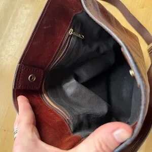 Absolutely gorgeous leather. Impeccably made. Cross body strap. Leather lined with zip pocket.
