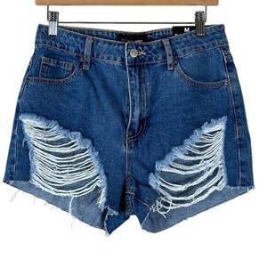 NWT Fashion Nova Jean Shorts Womens M Medium Wash Distressed Daisy Dukes Cowgirl