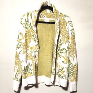 Maeve Anthropology Tropical Pineapple Knit 100% Cotton Cardigan Size M Like New