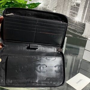 Authentic CHANEL Lambskin Cambon Line Zippy Clutch Wallet