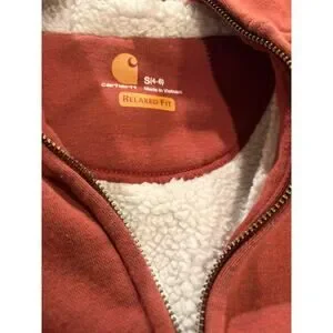 Authentic Carhartt sherpa-lined zip hoodie in a rare rust red tone — perfect Y2K workwear and gorpcore layering piece. Durable cotton blend exterior with ultra-warm sherpa lining gives that classic utility streetwear vibe.