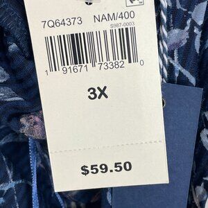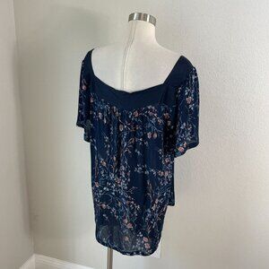 NEW Lucky Brand Womens Plus 3X Floral Square Neck Top Navy Blue Boho Blouse