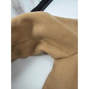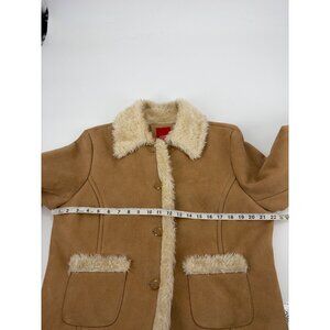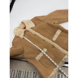 Y2K Esprit Womens XL Faux Suede Shearling Penny Lane Coat Beige Sherpa Lined