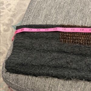 Chic Zara cardigan with patchwork design. Features black, gray, cream, and brown colors. Ideal for a cozy, stylish outfit.