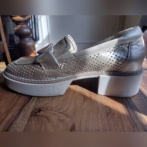 Softwaves Gold Leather Chunky Heel Loafers Size 40 (9.5)