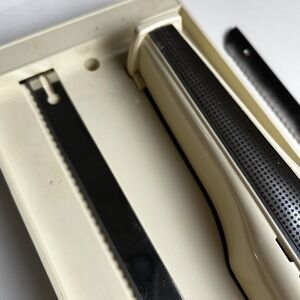 This classic kitchen appliance includes the original wall‑mountable plastic storage case and interchangeable serrated stainless steel blades designed for carving meats, poultry, and slicing bread.