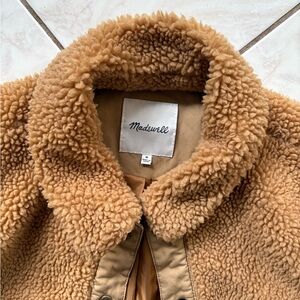 Preloved Madewell Sherpa jacket in a size medium. Worn a few times but lots of love left. No stains or holes. Embrace warmth with this cozy teddy jacket. Ideal for cool weather outings.