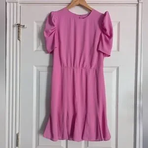 Chic Pink Puff Sleeve Dress — As Seen on a News Anchor!