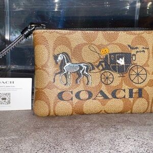 Coach Corner Zip Wristlet in Signature Canvas CN006 Halloween Horse and Carriage