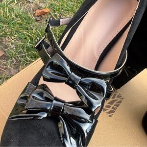 AOSPHIRAYLIAN Elegant Goth Girly Bow Womens Heel Platform Mary Jane 8. Like new black absolutely gorgeous shoes with cute bow details and heart buckle. They have some cushion inside and soft suede fabric. 5.5 inch heel and 2.2 front platform.