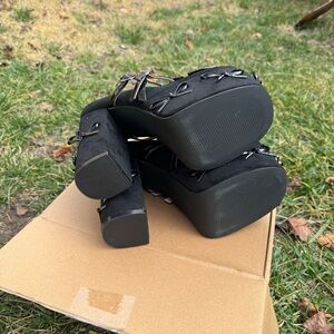 #womensheels #bow #kawaii #girly #goth black platform heel like new cute egl women’s chunky soft suede velvet gothic