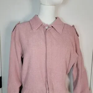 This Solai The Label ribbed romper is effortlessly chic and cozy! Featuring a soft, textured ribbed fabric in a beautiful dusty pink hue, this one-piece is perfect for both lounging and stepping out in style. With a zip up bottom abd button front, long sleeves, and a relaxed yet flattering fit, it’s the perfect transitional piece for all seasons.