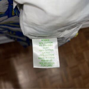 Bodice: 92% cotton, 8% spandex; skirt: 100% cotton; lining: 100% cotton