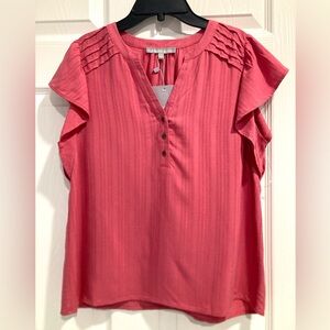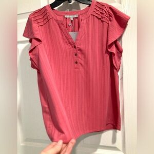 NWT Daniel Rainn Women Blouse Size Small Salmon Pink V-Neck Short Ruffle Sleeve