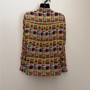 Alice + Olivia Silk Willa Western Postcard Print blouse size L.