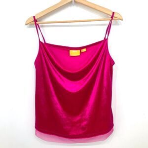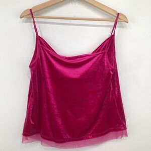 Anthropologie Maeve Vibrant Pink Velvet Tank Top with Semi Sheer Hemline