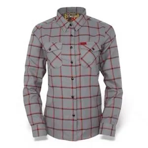 NWOT DIXXON Women’s Smoke Eater Flannel Shirt Plaid Gray Red