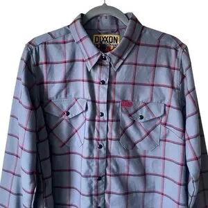 DIXXON Women’s Smoke Eater Flannel Shirt Plaid Gray Red Large NWOT