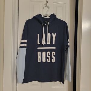 Navy 'Lady Boss' Hoodie with Light Blue Sleeves Size L