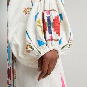 NWT FARM RIO White Macaw Embroidered Maxi Dress