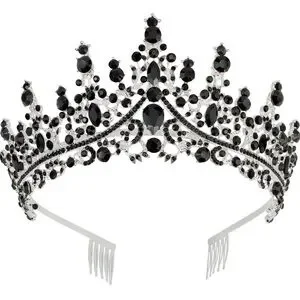 Stunning Silver Tiara With Black Rhinestones