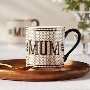 Anthropologie DAD and MUM Bistro Tile Stoneware Mug Family Edition