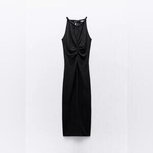 Zara Black HALTER NECK MIDI DRESS Size Extra Large XL