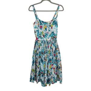 Pinup Couture Swing Dress Womens Small Paris Novelty Print Pink Blue 1950s Retro