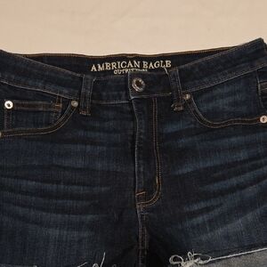 American Eagle Outfitters Women's Distressed Dark Blue Jean Shorts