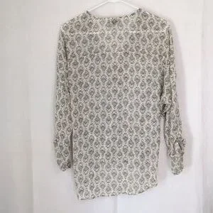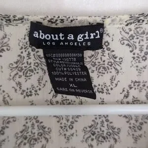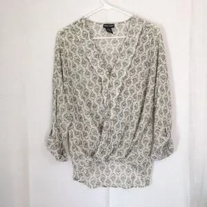 About a Girl Off-White Damask Print Wrap Style Chiffon Blouse Size Extra Large