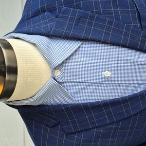 BEN SHERMAN Dark Blue Plaid Polyester Blend Mens Sz 42 R Sport Coat Blazer