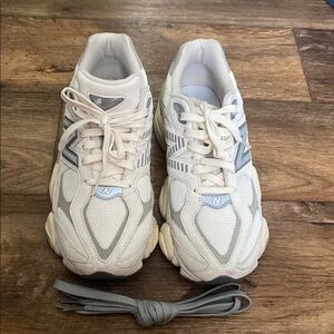 Stylish New Balance sneakers. Features white and gray design. Comfortable and versatile, doesn’t come with box