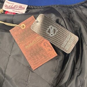 Classic Mitchell & Ness jacket in vibrant blue and sleek black. Ideal for everyday style.Mitchell & Ness Toronto maple leafs nhl hockey Canada satin jacket sz large tall