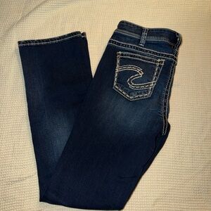 Dark blue straight leg jeans by Silver Jeans. Classic design with a sleek look.