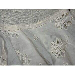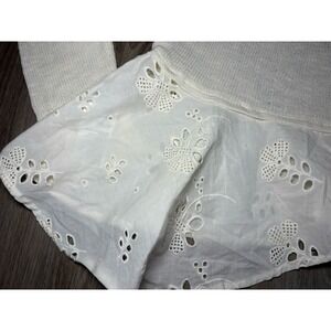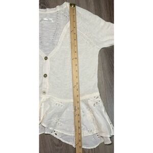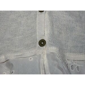 Anthropologie Eyelet Hem Cotton Cardigan Sweater Ivory Dainty Feminine Cottage M