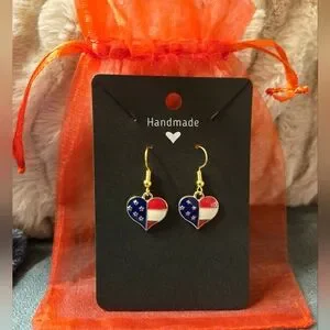 Handmade Gold Heart Shaped Earring/Necklace set. Earrings are gold plated & hypoallergenic. Necklace chain is 18 inches long. Comes in red organza bag :) thank you for looking!