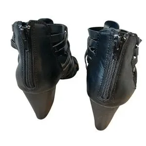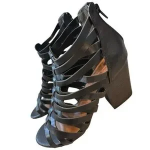 NWOT Jellypop Monet Womens Black Strappy Stacked Heel Zip Sandal
