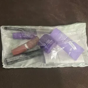 Clinique skin care set including mascara, eye liner, lipstick, Smart clinical repair eye cream, wrinkle correcting serum, and Take the day off facial cleansing mousse.